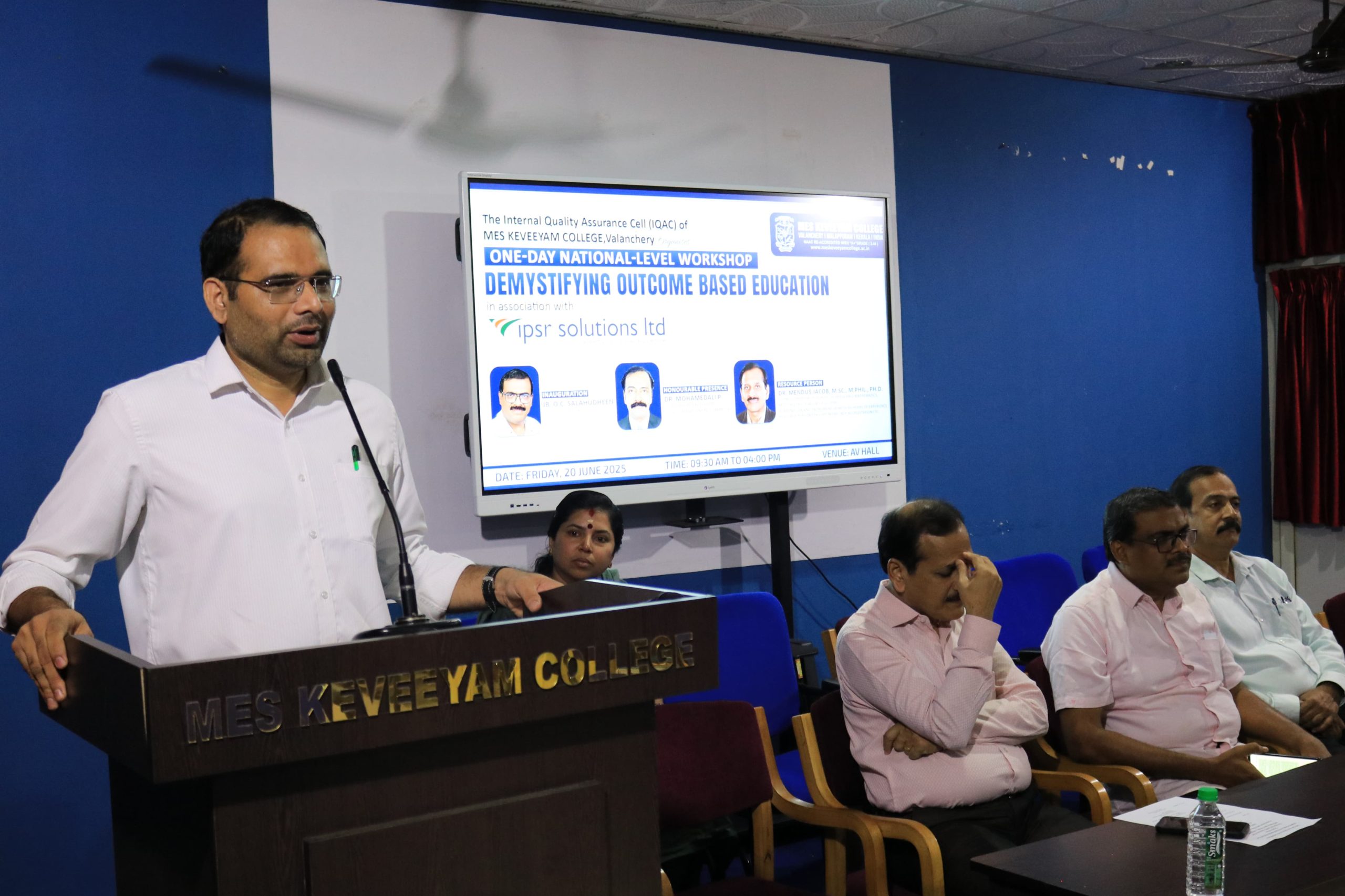 The One-Day National Workshop on “Demystifying Outcome-Based Education” was a significant milestone in MES KEVEEYAM College’s ongoing commitment to academic innovation and quality enhancement. The workshop successfully achieved its objective of simplifying and demystifying Outcome-Based Education for all participants. The hands-on demonstrations and expert guidance by Dr Mendus Jacob provided both strategic direction and practical tools for effective implementation of OBE.