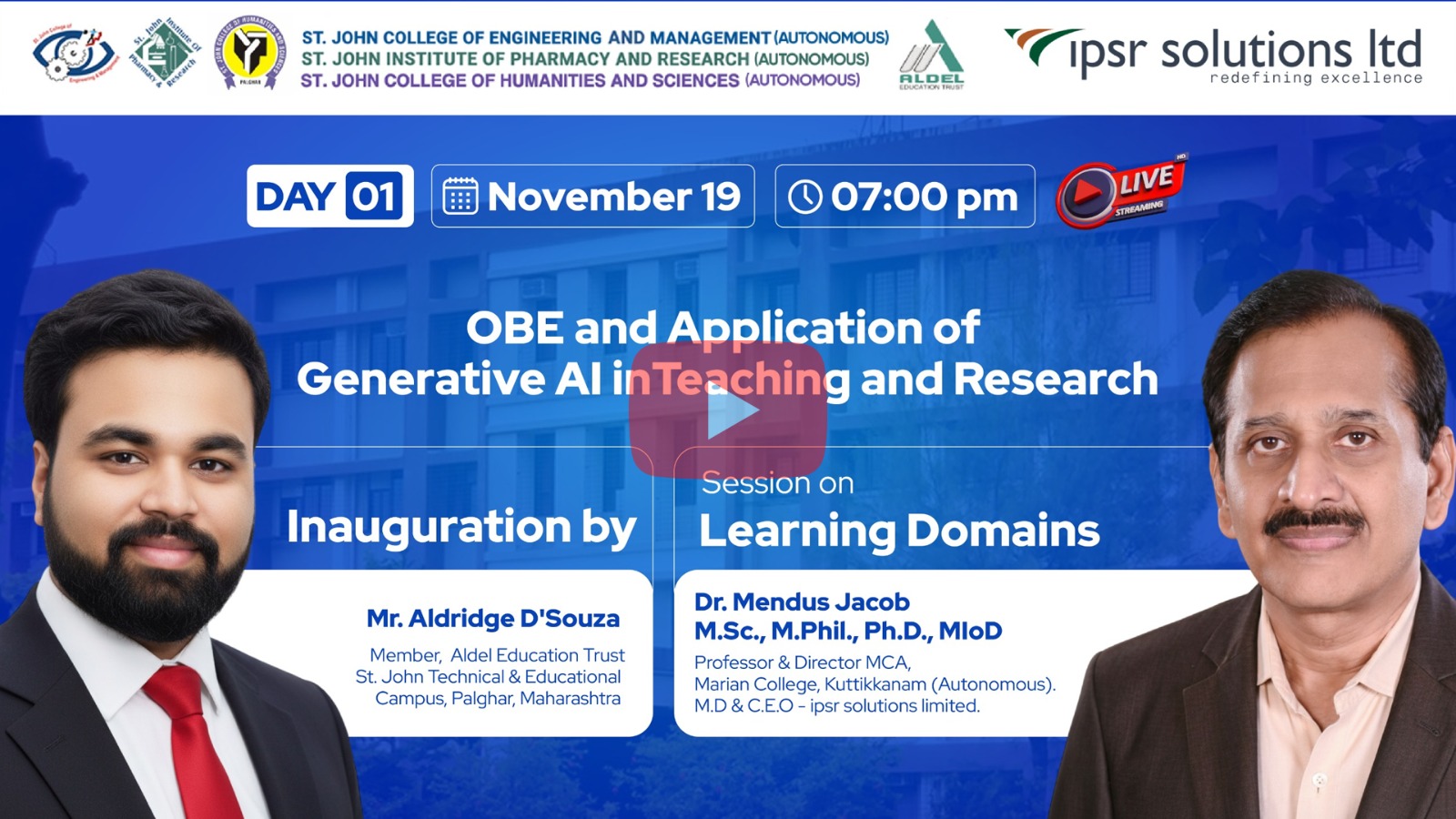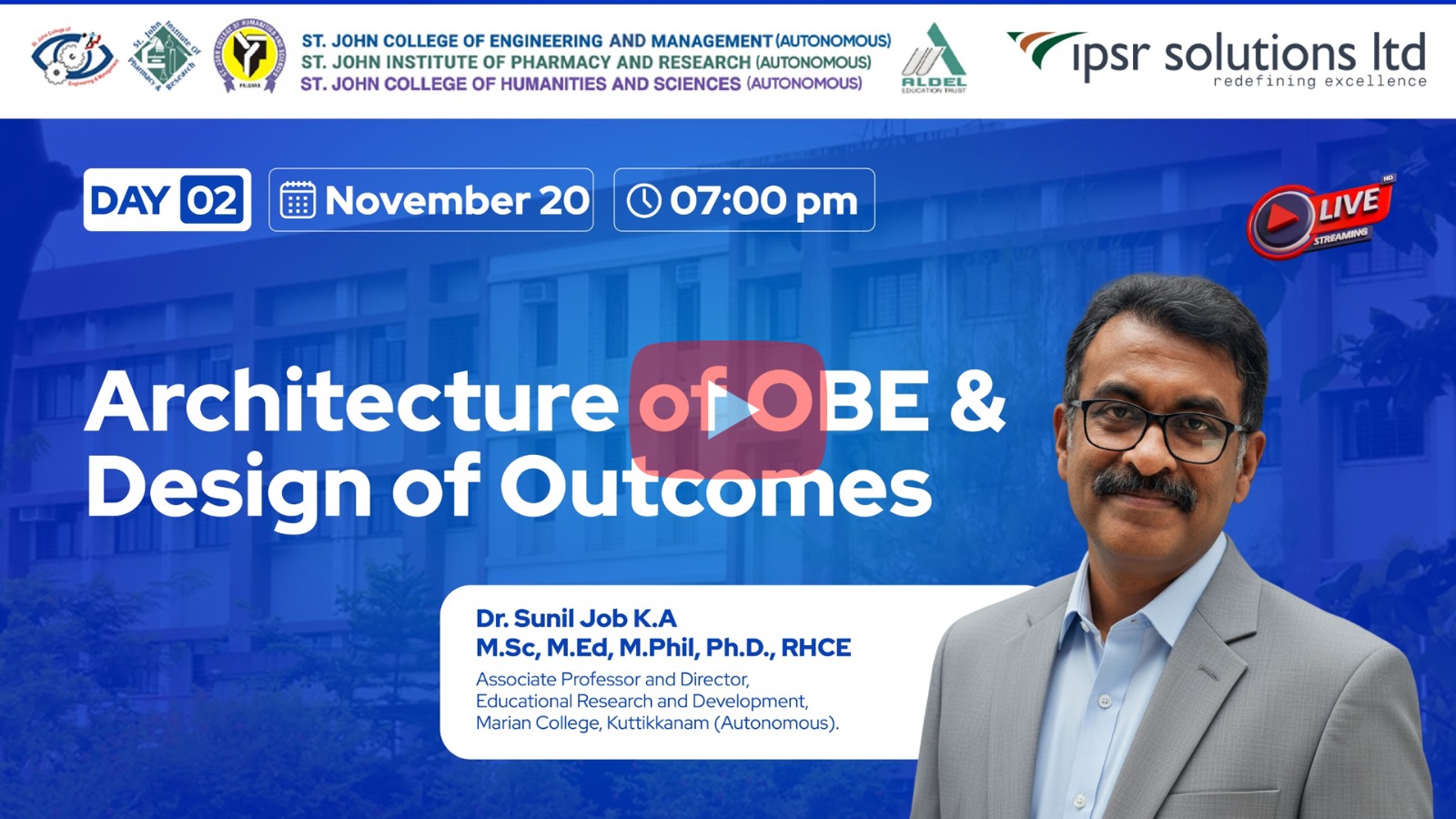 The technical sessions were conducted by Dr. Mendus Jacob, M.D. & CEO – ipsr solutions limited, Director – Valin Technologies (UK, USA, Canada), and Professor & Director – MCA, Marian College Kuttikkanam (Autonomous). A renowned academician and industry expert, Dr. Jacob delivered an insightful and highly interactive session focused on demystifying the implementation of OBE across academic institutions.Session Highlights