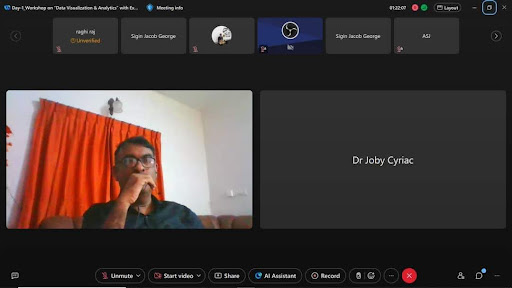 Dr Joby Cyriac, Vice Principal of Marian College Autonomous, Kuttikkanam delivered the Welcome Speech. He mentioned that this workshop offers a unique opportunity to learn from experts and explore the powerful tools. Dr Joby Cyriac, on behalf of all those participating in the programme, welcomed Rev Fr Boby Alex Mannamplackal, Dr Thomas Varghese, Dr Ajimon George, the resource persons, and all the participants of the five-day online workshop on ‘Data Visualisation and Analytics’ with Excel, Power BI, Tableau and Generative AI.