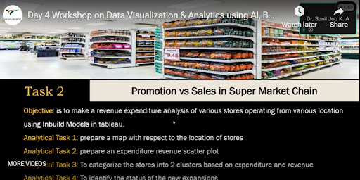 Dr Sunil Job was the resource person on the first day with the topic Unlocking the Power of Tableau Public: Comprehensive Dashboard Creation. He mentioned that the workshop is completely customised in a completely experiential manner. Dr Sunil noted that the current century is driven by data analytics which fuels decision-making. He further said that the greatest possibility of data analytics is that it assists in informed/informative decision-making and can be divided into diagnostic, descriptive, predictive, and prescriptive analytics.