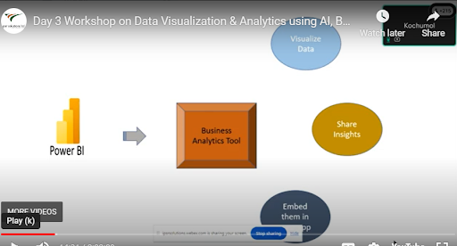 Ms Kochumol further stated that Power BI is a Business Analytics Tool with which one can visualize Data. Once necessary data is collected, the second step is pre-processing or preparing data for analysis. The prepared data can be shared/connected to an analytical tool for visualisation. She further mentioned that the uniqueness of Power BI compared to Tableau or Excel is that, the insights can be shared with our teammates once a dashboard/visualization is created. Finally, the reports generated in Power BI can be embedded in any application. In short, Power BI is an analytical tool that can visualize data, share insights and embed them in any application. Power BI is a collection of components, namely Power Query, Power Pivot, Power View, and Power BI Service components. Ms Kochumol mentioned that Power BI has the maximum Google Search, Maximum Features, and Data Connectivity. She further explained the Product Suite, Power BI Desktop, Power BI Pro, Power BI Premium and Power BI Embedded, and informed the participants that the Power BI Desktop version, though with limited features is a free version suitable for beginners. Ms Kochumol showed how reports can be generated and get insights and inferences from one particular data.